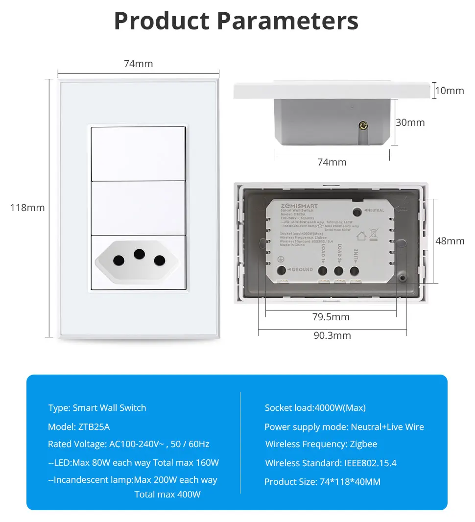 Zemismart Zigbee Smart Brazil Socket 10A 20A Outlets Work with Tuya Smart Life App Alexa Google Home Control